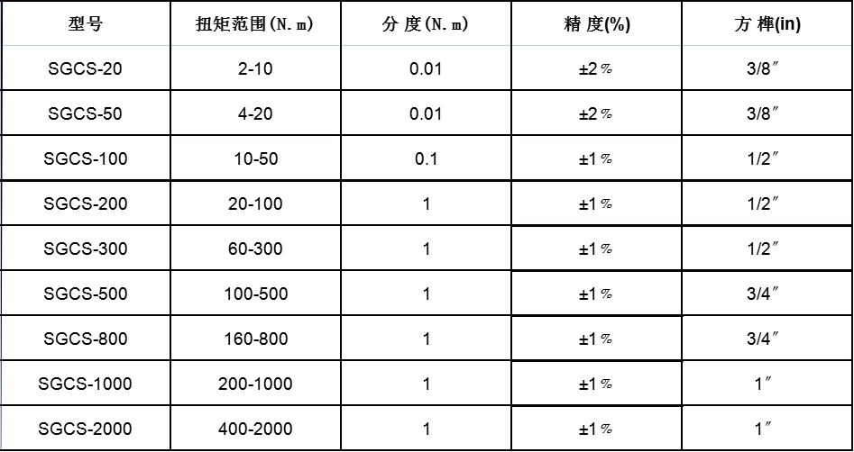 SGCS系列無線數顯扭力扳手是實干廠家生產的******于無線對緊固的扭矩及時監控,其具有無線傳輸,和提升在線檢測數據的量化傳遞等功能。該款無線數顯扭力扳手***顯示準確、***、耗電量小、使用***、配備有多種扭矩預緊和測量模式,可在峰值模式下存儲100組檢測的扭矩值數據,并可對存儲的數據和電腦進行通訊,***操作者對記錄的數據進行查看、處理、分析、備份、打印,對緊固件的預緊和測量過程進行了控制。